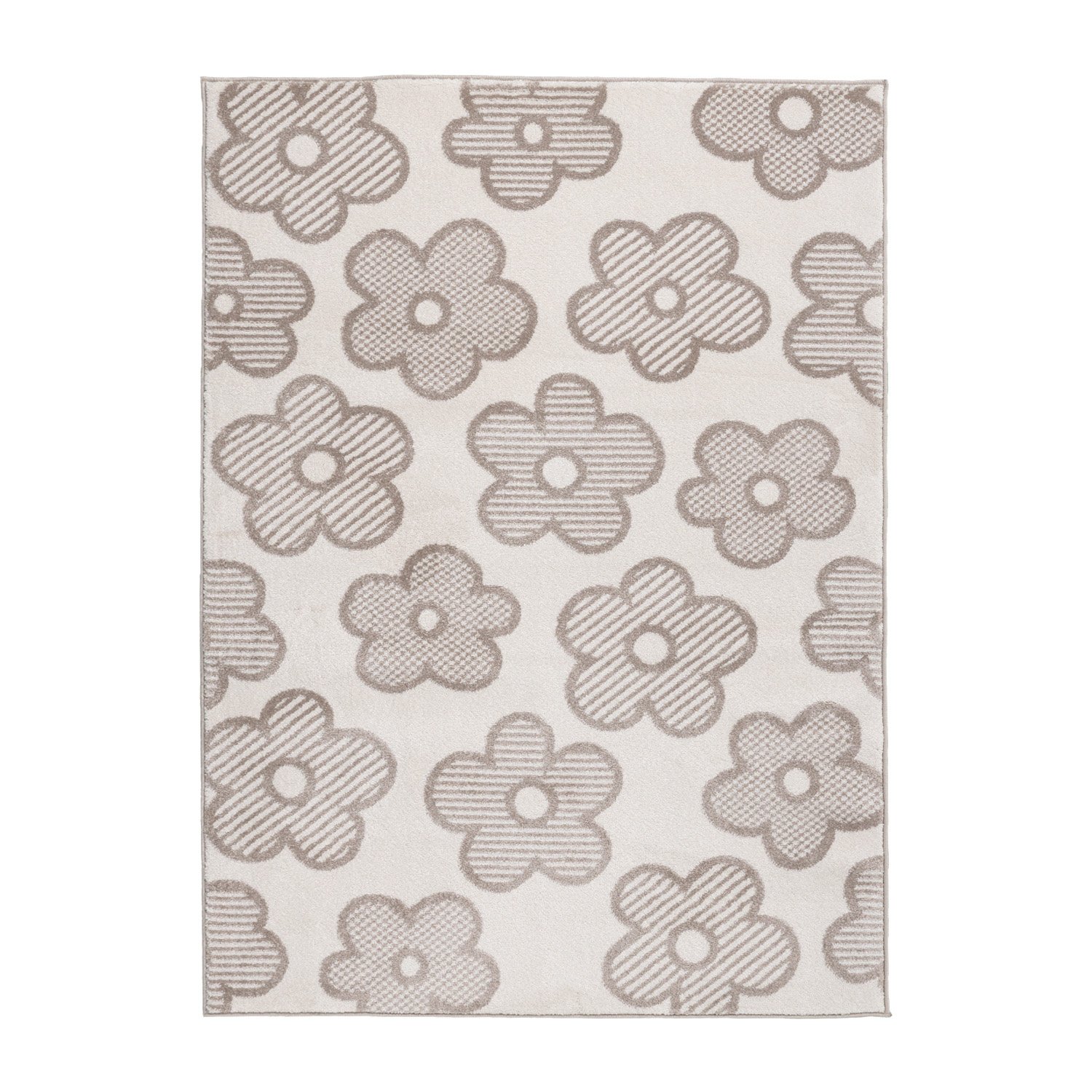 Barnrumsmatta - Bowie Flower Gräddvit finns i flera storlekar, nämligen: 80x150 cm, 120x170 cm en 140x200 cm.