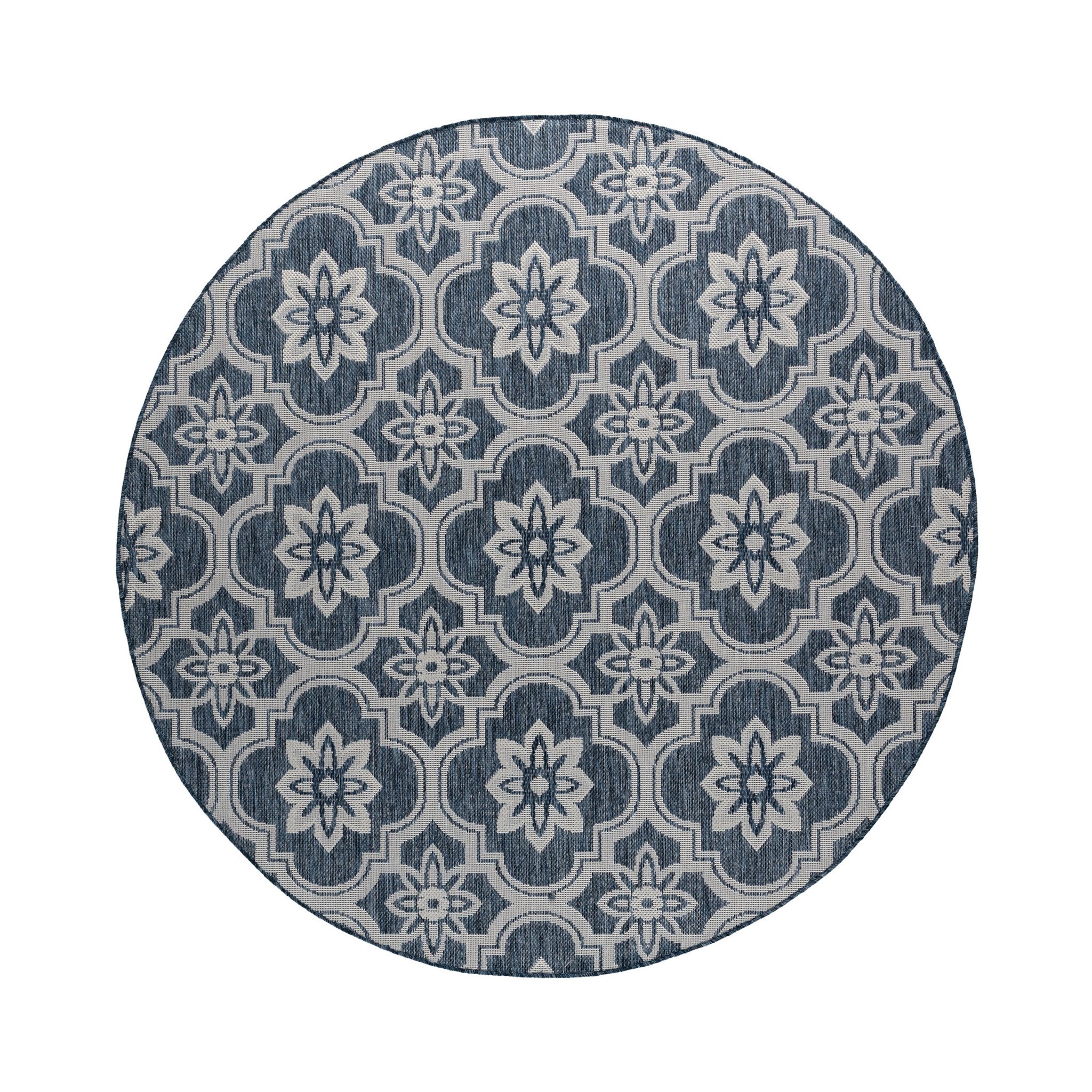 Den runda utomhusmattan – Rio Flower Blå är den perfekta kombinationen av vintage-charm och modern funktionalitet. Det mörkblå och vita, grafiska blommönstret är en lekfull blinkning till klassiska mosaikplattor och kommer till sin rätt mot trädgårdens grönska eller på en solig balkong. Den runda formen skapar mjuka linjer som enkelt tillför värme till strama terrasser eller moderna utehörn.